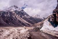 It’s easy to see why it was possible to open this awe inspiring route to commercial traffic only a few years ago. The drive today is about 6 hours. The narrow road, high above the Chandra and Bhaga Rivers is a maze of twists and turns around jagged peaks and through barely passable gorges. Perhaps you will see Tibetan Wild Ass and Blue Sheep prized for their pashmina wool. Leave the state of Himachal Pradesh and enter the state of Jammu and Kashmir. Cross the 16,000 ft Baralachla La, the “Crossroads on Summit”, which is the meeting point of routes from Ladakh, Spiti, and the Chandra Valley. You can spend the night, possibly camping, at Sarcu – you will be at 14,500 ft – high enough to kill some one who is not acclimatized. (No joke – I once saw a super-fit 20 something year old guy being carried down, unconscious, from 13,000 ft)